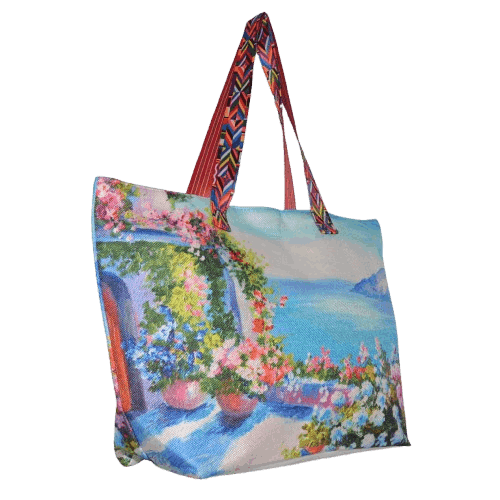Hessian Printed Beach Bag