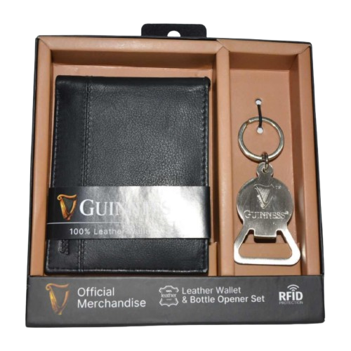 Guinness Leather RFID Wallet & Keyring Bottle Opener Set- Style No. JBGNGS03 (Black Only)
